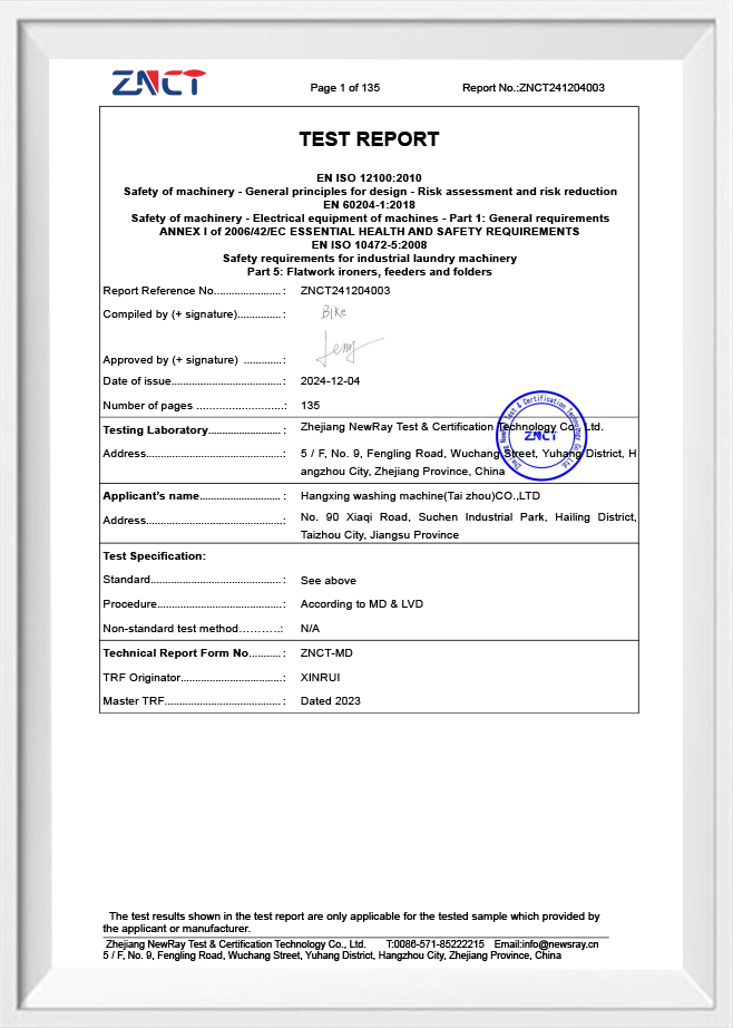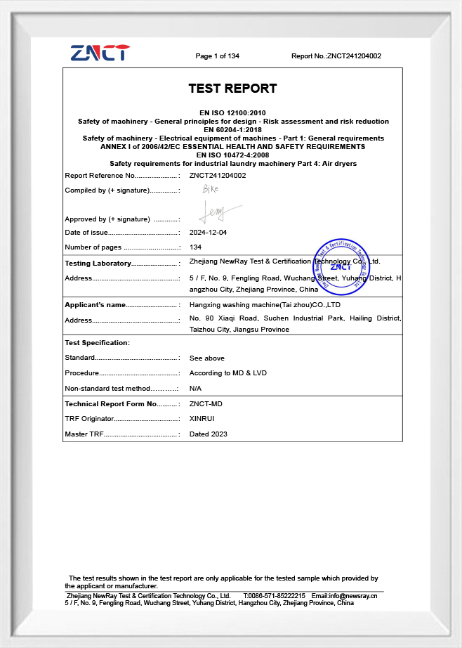 শিল্প ওয়াশিং মেশিন পরীক্ষার প্রতিবেদন